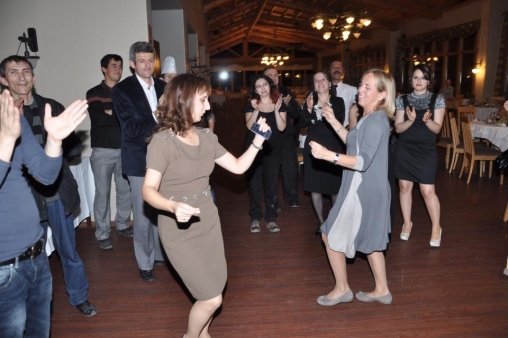 Hep beraber yenilen akşam yemeği sonrası canlı müzik eşliğinde oyunlar oynandı. Çalışanlarıyla bir aile olduklarını belirten Ergül çifti de zaman zaman oyunlara eşlik etti.