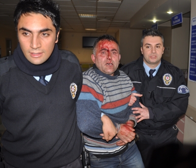 Edinilen bilgiye göre Köroğlu Mahallesi Papatya Sokak Kundakçı Apartmanı'ndaki evlerinde tartışmaya başlayan Rıza A. ile oğlu Barış A., kavganın büyümesi üzerine birbirlerine saldırdı. Komşuların ihbarı üzerine olay yerine polis ekipleri sevk edildi. Baba-oğul, kendilerine müdahale etmek isteyen polis memurları Osman E. ve Ömer Ö’yü darp etti. Rıza K.'nin kafa atması sonucu yaralanan polis memuru Osman E.’nin kaşına 6 dikiş atıldı. Polis ekipleri tarafından gözaltına alınan Rıza K. ve Barış K. ifadeleri alınmak üzere karakola götürülürken, olayla ilgili inceleme başlatıldı.