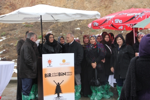 Törende konuşan Kadın Kolları Başkanı Arzu Aydın, Türkiye genelinde başlatılan projenin detayları hakkında bilgiler verdi. “AK Parti kadın kolları olarak Türkiye genelinde 3 Milyon 250 Bin üye sayısına ulaşarak dünyanın en büyük sivil toplum örgütü olma başarısına nail olmuştur. Bu başarı her kadın için bir fidan dikilmesi vesilesiyle 3 buçuk milyon fidanın toprakla buluşturmakla taçlandırılmış ve ölümsüz hale getirilmiştir” diyen Kadın Kolları Başkanı Aydın, “Bu proje ile her bir üyemiz için bir fidan dikerek partimizin hareket noktası olan “hizmet” anlayışımıza uygun olarak hareket etmekteyiz. Buradaki amacımız ormanların korunması ve çoğaltılması olduğu gibi kadının umut olduğunun altının çizilmesidir. Kadın ağaçtır, umuttur, Kadın ağaç gibi kök salar toprağa ve evini yuvasını sağlam tutar. Dalları yaprakları evin çatısıdır. Yazın gölge, kışın sığınak olur. Kadını kırılacak, solacak bir çiçek gibi değil de, bugün ve yarın dimdik koca bir çınar gibi algılayan ve bunun da tüm toplumda algılanması hedefiyle hareket eden partimize tekrar tekrar teşekkür ederim” şeklinde konuştu.