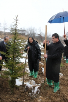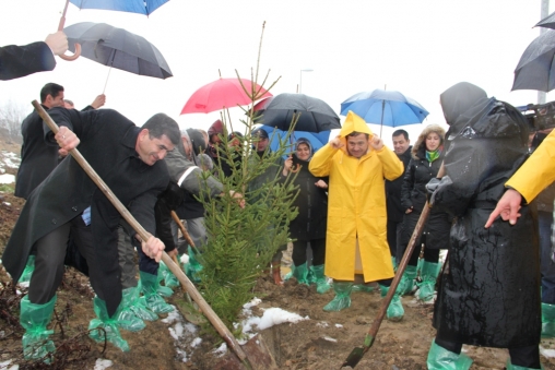 Sağanak yağmur altında yapılan açılış konuşmasının ardından fidan dikim törenine geçildi. Highway Alışveriş Merkezi’nin kuzey kısmında bulunan arazide fidan dikim yapan parti üyeleri ve bürokratlar bu tür projelerin devamının gelmesini temenni ettiler.