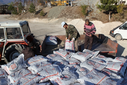 Enerji ve Tabii Kaynaklar Bakanlığı ile Aile ve Sosyal Politikalar Bakanlığı’nın ortaklaşa yürüttüğü proje kapsamında Mudurnu ilçesinde 250 ton kömür dağıtıldı. İlçe merkezi ile köylerde yaşayan ve muhtarlar tarafından tespit edilen ihtiyaç sahiplerine verilmek üzere dağıtılan kömürler, ihtiyaç durumuna göre 40 ve 60 çuval olarak vatandaşlara verilecek. Dağıtılan kömürler ile birlikte dört sayfalık ‘sobalarda kömür kullanım kılavuzu’ veriliyor. Resimli olarak hazırlanan kılavuzda sobalara bağlanan bacaların nasıl olması gerektiği anlatıldı. Kılavuzda ayrıca soba kurulurken dikkat edilecek hususlar, sobe ve şofben kaynaklı karbon monoksit zehirlenmelerinde neler yapılması gerektiği başlıklı soruların cevapları yer alıyor.