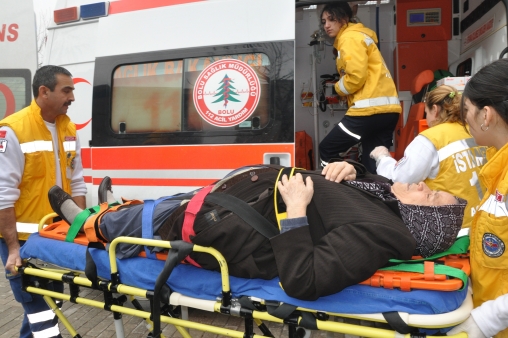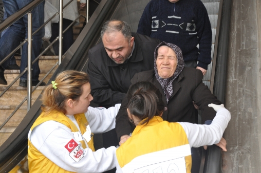 Olay, saat 13.00 sıralarında İzzet Baysal Caddesi Belediye Meydanı'nda bulunan yürüyen merdivenlerde meydana geldi. Koltuk değneği ile yürüyen Emine Tunç, merdivenlerden çıkmak isterken dengesini kaybederek aşağı düştü. Yaralanan Tunç'u görenler yardıma koştu, yürüyen merdiven durduruldu. Acı içerisinde kıvranan ve başında şişlik oluşan Emine Tunç'a 112 Acil Servis ekibi müdahalede bulundu. Emine Tunç, kaldırıldığı Köroğlu Devlet Hastanesi'nde tedavi altına alındı.