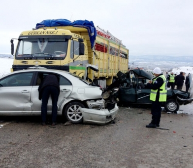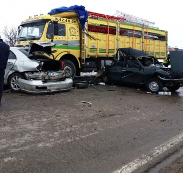 Köy yoluna 100-150 metre kala, arkadan gelen bir kamyonun konvoydaki arabalara çarpması sonrasında dört araç birbirine girdi.