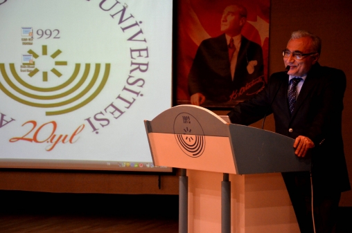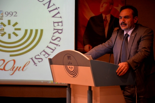 Sunumun sonunda, Ekrem Türker Fidan’a, Rektör Prof. Dr. Hayri Coşkun teşekkür plaketi verdi.