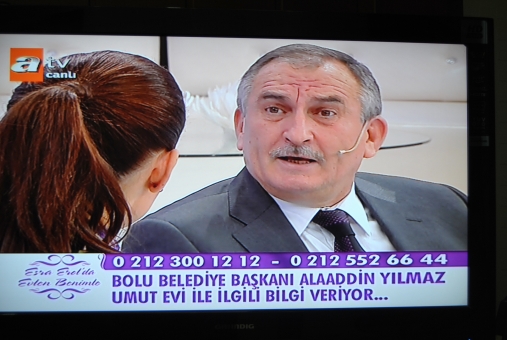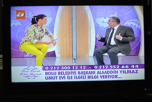 Başkan Yılmaz, hafta içi her gün ATV ekranlarında yayınlanan ve Esra Erol’un sunuculuğunu yaptığı “Evlen Benimle” programında canlı yayın konuğu oldu. Reyting rekorları kıran ve evlilik adaylarının buluşturulduğu programda Yılmaz, Bolu’da oluşturulan Umut Evi Projesi’ni anlattı.