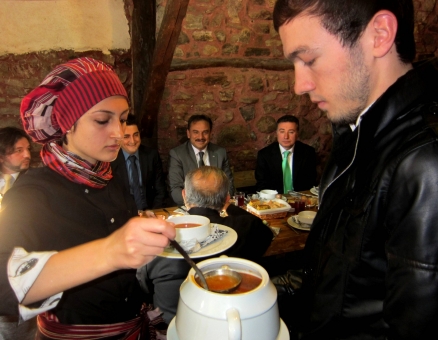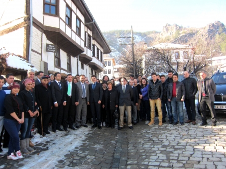 Mudurnu Hacı Şakirler Konağı’nda, Kaymakam Nurullah Ertaş’ın ev sahipliğinde, ilçenin turizmine katkı sağlamak ve öğrencilerin uygulamalı derslerle eğitimlerini pekiştirmelerini sağlamak amacıyla düzenlenen “Yemek Kültürü” etkinliğine, Rektör Prof. Dr. Hayri Coşkun ile Rektör Yardımcıları Prof. Dr. Akçahan Gepdiremen ve Prof. Dr. Resul Eryiğit katıldı. Etkinliğin açılış konuşmasını yapan Mudurnu Süreyya Astarcı MYO Müdürü Doç. Dr. Mustafa Midilli, bu tür uygulamaların üniversite ile sektör işbirliğini güçlendirdiğini ve öğrencilerin donanımlı şekilde sektöre geçmelerini sağladığını ifade etti. Rektör Prof. Dr. Hayri Coşkun, Rektör Yardımcıları Prof. Dr. Akçahan Gepdiremen ve Prof. Dr. Resul Eryiğit, Mudurnu Kaymakamı Nurullah Ertaş ile konak sahibi Mehmet Cantürk’e teşekkür etti.