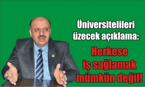 Ne diyor sn.Vekil?! Üniversite mezunu herkese iş bulmak mümkün değilmiş! O halde ihtiyaç fazlası Üniversiteleri, özellikle bölümleri kapatın! Devletin, iktidarların Anayasal görevidir vatandaşlarına iş alanları açmak, istihdamı geliştirmek! Evet, herkes memur olamaz, bu mümkün değil...Ama şu 10 yılı aşan süreçte Akpnin hangi fabrikayı, işletmeyi devreye sokarak, üreterek istihdam sağladığını söyleyebilirler mi? Bütün istihdamı özele havale etmek doğru mu? İşiniz, gücünüz satmak! Yabancılara, sermayedarlara peşkeş çekmek..Yazık, çok yazık!...