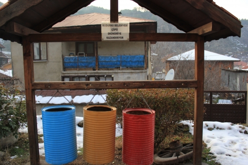 Geri dönüşümün ekonomiye ve doğaya katkısına dikkat çekmeye çalışan yerel yönetimlerden biride ilimizin tarihi, doğal ve kültürel yapısıyla tanınan Mudurnu Belediyesi oldu. Belediye yetkilileri, ilçenin merkezine yerleşime uygun renklerle ve doğal görünümüyle dikkat çeken bir alan oluşturarak, ilçe sakinlerini çöpün geri dönüşümü için bilinçlendirmeyi hedefliyor. Alana, ahşap bir materyal ile yerleştirilen sarı, kırmızı ve mavi renkte ki çöp kutuları ile çöpün ayrıştırılmasının önemine vurgu yapılırken, “Mudurnu belediyesi çöpü ekonomiye kazandırıyor” tabelasıyla, vatandaşların buralara ayrıştırarak attıkları çöplerin ekonomiye olan katkısının altı çiziliyor.