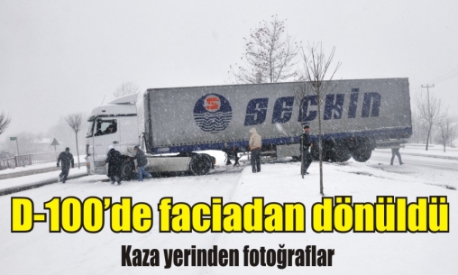 Kaza, saat 15:10 sıralarında D-100 Karayolu Paşaköy mevkiinde meydana geldi. Cici Taksi Kavşağı’ndan Yeni Terminal istikametine seyreden Yunus Emre Öztürk idaresindeki 33 AJY 07 plakalı nakliye TIR’ı, Cici Taksi’den Yeni Terminal istikametine seyrederken yoğun kar yağışı sonucu kayarak yoldan çıktı. Makaslayan TIR’ın kabin bölümü orta refüje çıkarken dorsesi yolu kapattı. D-100 Karayolu’nun Ankara’dan İstanbul istikameti kaza nedeniyle yarım saat trafiğe kapandı. Orta refüje çıkan TIR, ağacı ve elektrik direğini devirdi. Kaza yerine gelen SEDAŞ ekipleri elektrikleri kesti. Aydınlatma ışıkları ağaçta takılı kalırken, trafik ekiplerinin yardımıyla TIR yeniden yola sokuldu.