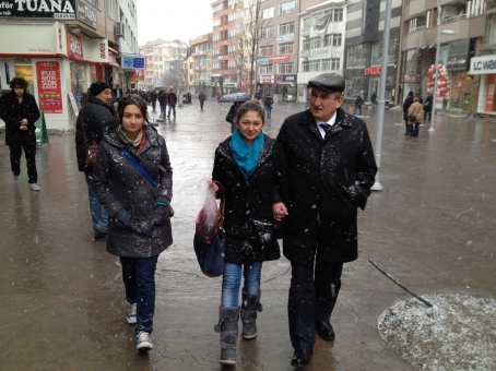 Kar yağışının etkili olduğu kent merkezinde renkli görüntüler ortaya çıktı. Sık sık sokaklarda yürüyerek vatandaşlarla sohbet etmeyi gelenek haline getiren Belediye Başkanı Alaaddin Yılmaz, kar yağışı altında yine yürüyüşe çıktı. İzzet Baysal Caddesi’ndeki yürüyüş sırasında yanına gelen Abant İzzet Baysal Üniversitesi (AİBÜ) Meslek Yüksekokulu 1.Sınıf öğrencisi Zeynep Çeliktaş ve lise mezunu Emine Çetinkaya sohbet etmeye başladı. Kız öğrencileri koluna takan Başkan Yılmaz, arka arkaya sorulan sorulara yanıt verdi. Kız öğrenciler, “Başkanım, bu caddedeki çalışma ne zaman bitecek. Bu dikilen ağaçlar ne ağacı” diye sordu. Başkan Yılmaz da çalışmaların hava koşullarına göre en kısa sürede biteceğini söylerken, caddeye dikilen ağaçların ise ıhlamur ağacı olduğunu söyledi.