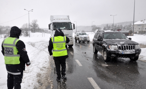 Bolu Dağı’nda, kar yağışı ve buzlanma nedeniyle D-100 karayolunun İstanbul’dan Ankara istikametine gidişte TIR ve kamyonların geçişine izin verilmiyor. Geceden bu yana D-100 Karayolu’nun Bolu Dağı kesiminde etkili olan kar yağışı sonrası trafik ekipleri harekete geçti. Yoğun kar ve buzlanma nedeniyle Elmalık mevkiinde kontrol yapan Bölge Trafik ekipleri, TIR ve kamyonları durdurarak geçişlerine izin vermedi. Kar kalınlığının 50 metreye ulaştığı Bolu Dağı’nda, özellikle buzlanma nedeniyle Kaynaşlı istikametine seyreden TIR’ların kayarak yolu kapatmaması için geçişler durduruldu. Normal araçların geçişine izin verilirken ağır tonajlı araçlar trafik ekipleri tarafından uyarılarak bekletiliyor.
