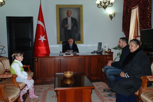 Engelli vatandaşlara tekerlekli sandalye temin etmek için başlatılan kampanyaya 1 milyon mavi kapak toplayarak büyük katkı sağlayan 4 yaşındaki anasınıfı öğrencisi Su Naz Şişman Babası Emrah Şişman ve Babannesi Nebile Şişman ile birlikte Vali Özçimen'i makamında ziyaret etti.
