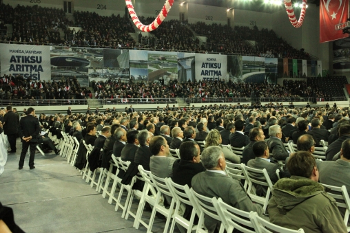 Açılış ve anahtar teslim töreninden önce bir konuşma yapan Başbakan Recep Tayyip Erdoğan ülkeye toplamda 1,5 milyar liralık hizmet ve eser kazandırdıklarını belirtti. Erdoğan, Türkiye genelinde 311 belediye ve 21 il özel idaresine 60 milyon lira değerinde 332 çöp toplama aracı, 55 çevre denetim aracı ve 2 vidanjör verildiğini anlatan Erdoğan, 212 atık su arıtma tesisinin enerji sarfiyatı giderlerinin yüzde 50'sine katkıda bulunulduğunu, 100 belediye ve bir organize sanayi bölgesine ait atık su atma tesisleri ve kanalizasyon şebekelerinin inşasına 55 milyon liralık hibe katkı sağladıklarını bildirdi. Ayrıca, 2 bin 200 belediyenin altyapı çalışmalarına bu törenle 324 milyon liralık hibe verdiklerini dile getiren Erdoğan, Marmara Bölgesi'ne kurulan 39 farklı hava kalitesi ölçüm istasyonu, 5 katı atık düzenli depolama tesisi, geri dönüşüm tesisleri, tıbbi atık tesislerini de hizmete aldıklarını kaydetti.