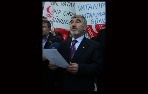 İl Başkanı Veysel Çetinkaya, partililer adına yaptığı basın açıklamasında yapacakları eylemin “milleti uyarmak ve ülke üzerinde oynanan sinsi ve tehlikeli bir oyuna karşı tepki göstermek” amacı ile yapılacağının altını çizdi.