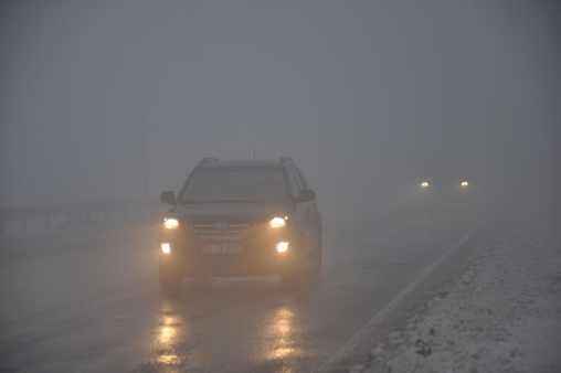 D-100 karayolunun Bolu dağı kesiminde özellikle Seymenler, Bakacak ve Karanlıkdere mevkilerinde başlayan ve aralıklarla devam eden kar yağışı ile sis nedeniyle görüş mesafesi 20 metreye kadar düştü.