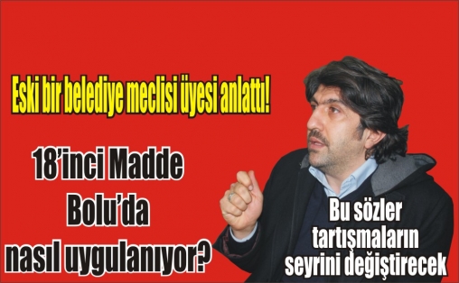Bolu gündeminin aylarca süren tartışma konusu 18’inci Madde uygulamaları hakkında değerlendirmelerde bulunmak üzere İnşaat Mühendisi ve Bolu Express Gazetesi köşe yazarı Ekrem Çetinkaya konuştu. Cahit Çıngı başkanlığındaki İnşaat Mühendisleri Odası Yönetim Kurulu’nda görev alan ve geçmişte Ak Parti Belediye Meclis Üyeliği de yapan Çetinkaya, Bolu’da hayata geçen 18’inci Madde uygulamalarını anlattı.