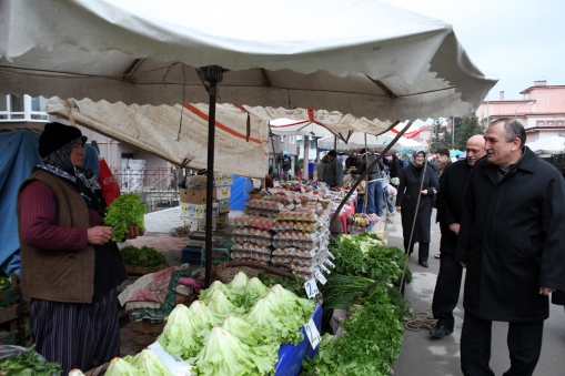 Semt pazarında satış yapan pazar esnafını tek tek ziyaret eden Belediye Başkanı Alaaddin Yılmaz ve beraberindekiler esnafa hayırlı işler dileklerinde bulundular.