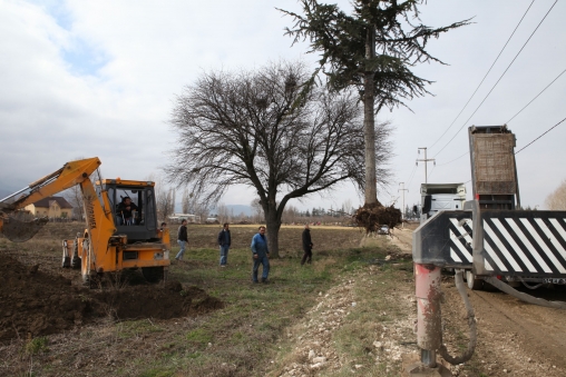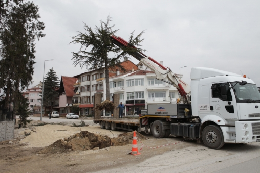 Bolu Belediyesi tarafından Bahçelievler’deki Vali Konağı önünde gerçekleştirilen yol genişletme çalışmaları sonucunda, yol ortasında kalan 3 adet Göknar ağacı sökülerek yeni yerlerine dikildi. Boylarının büyük olmasından dolayı vinç yardımı ile titizlikle sökülen 3 adet Göknar ağacından, 2 tanesi Bolu Belediyesi Fen İşleri Şantiyesi’ne, 1 tanesi de Karacasu yolu üzerinde bulunan Bolu Belediyesi’ne ait fidanlığa dikildi.