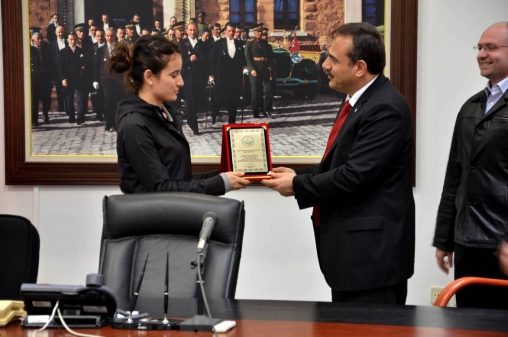 AİBÜ Spor Kulübü yetkililerinden Kulüp ve Bayan Hokey Takımı ile ilgili bilgi alan Rektör Prof. Dr. Coşkun, hiçbir başarının mücadele etmeden kazanılamayacağını ifade ederek, “Gençlerimizin böyle başarıları bize çok büyük mutluluk getiriyor, ayrı bir heyecan yaşatıyor. Elde ettiğiniz başarılar bizleri memnun ediyor. Avrupa’da da başarılı olacağınıza inanıyorum, her zaman da sizlere destek vermeye devam edeceğiz.” diye konuştu. Coşkun, daha sonra Bayan Hokey Takımı’nı kutlayarak takım kaptanı Ayla Esen’e diğer oyuncular ve kulüp adına plaket takdim etti.