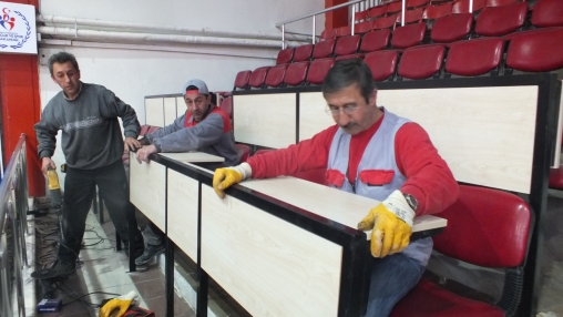 Yaklaşık 15 gündür 17 Temmuz Spor Salonu’nda süren çalışmalar sonunda meyvelerini verdi. Taraftarlar ve basının farklı yerlerde maç izlemesine imkan veren tribünde çalışmalar dün itibariyle tamamlandı. Salonun alt giriş kısmında bulunan tribüne ilk olarak raylı masalara monte edildi. Daha sonra ise elektrik aksamı yenilendi. Yapılan bu sistemle basın mensupları diz üstü bilgisayarları ile çalıştıkları kurumlara rahat bir şekilde haber geçme imkanına sahip olacaklar. Basın mensupları kendileri için yapılan bu yeni tribünü ilk olarak bugün oynanacak olan Boluspor-Zilespor basketbol maçında kullanabilecekler.