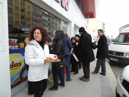 CHP Örgüt yönetimlerinden Çiğdem Türker Ulusoy’un proje danışmanlığıyla Gül Erez, Soner Oflaz, Çiğdem Uz ve Seher Gülen’in birlikte geliştirdikleri “Emeğe saygı çayı” projesi kapsamında, sabah saat 06.00 itibariyle Büyük Kökez durağında işyeri servislerini bekleyen işçi ve memurlara çay ve simit dağıtıldı. Proje çalışmasına partililer de yoğun ilgi gösterdi.