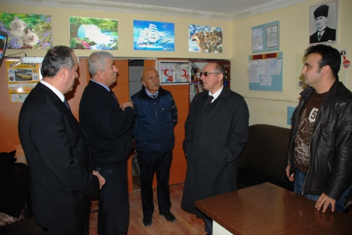 Vali Özçimen, taksi durağında görev yapan taksi şoförleri Salih Yıldız, Muzaffer Cebeci ve Sezgin Kocaman ile bir süre sohbet etti.