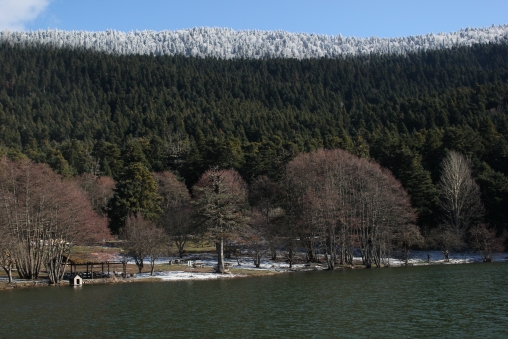 Bolu'ya 13 kilometre uzaklıkta bulunan Gölcük Tabiat Parkı'nda ise kış ve ilkbahar bir arada yaşanıyor.