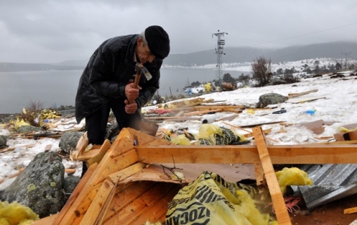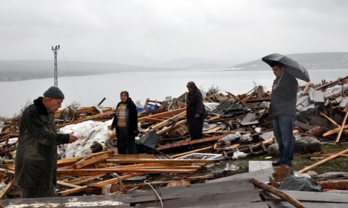 Evlerinin parçalanmasından ve eşyalarının rüzgarda etrafa savrulmasından dolayı mağdur olduklarını söyleyen vatandaşlar, yaylada onarıma başladılar.