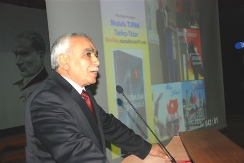 Müftü Şahin'in konuşmasının ardından öğrenciler tarafından İstiklal Marşı'nın 10 kıtası ezbere okundu. Ardından 'Destanlaşan Çanakkale' adlı bir sunum hazırlayan tarihçi yazar Mustafa Turan, salondaki davetlilere seslendi.