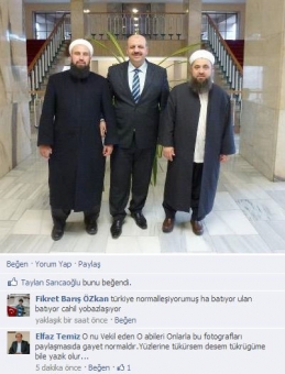 Ak Partili Bolu Milletvekili Ali Ercoşkun’un TBMM’de kendisini ziyaret eden misafirleri ile çektirdiği fotoğraf olay oldu. Ali Ercoşkun’un sarık ve cübbeli iki kişiyle TBMM koridorunda çektirdiği fotoğrafa Cumhuriyet Halk Partililer büyük tepki gösterdiler. Fotoğraf tam 24 kişi tarafından paylaşılırken, CHP’liler ile Ak Partililer de yorum kısmında birbirlerine girdiler.