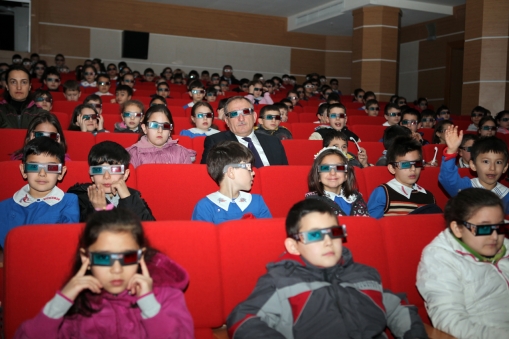 Abant İzzet Baysal Üniversitesi Öğretim Görevlisi İhsan Ayıtkan tarafından hazırlanan gösteriyi Belediye Başkanı Alaaddin Yılmaz ve minik öğrenciler üç boyutlu gözlüklerini takarak izlediler.