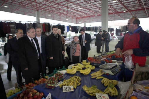 Fidan dağıtımının ardından Başkan Yılmaz Kapalı Semt Pazarı esnafını ziyaret etti. Esnafın sıkıntılarını dinleyen Başkan Yılmaz, sorunların çözümü için talimat verdi. Başkan Yılmaz pazara alışveriş yapmak için gelen vatandaşlarla da sohbet etti. Çocuk sevgisiyle bilinen Başkan Yılmaz, burada da tüm çocuklara şeker verdi.