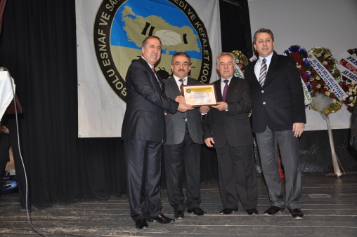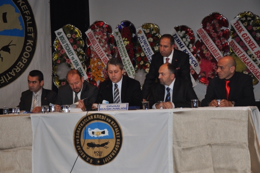 59 yıllık geçmişe sahip Esnaf ve Sanatkarlar Kredi ve Kefalet Kooperatifi (ESKOP) Olağan Genel Kurulu dün İl Kültür ve Turizm Müdürlüğü Konferans Salonu’nda gerçekleştirildi. Saat 10.30’da başlayan ve yaklaşık iki saat süren genel kurula, Bolu İl Emniyet Müdürü Sabri Durmuşlar, MHP İl Başkanı Mustafa Ramazan, Kızılay Bolu Şube Başkanı Hüseyin İka, TESKOMB Başkan Vekili Ömer Gümüş, Bolu Esnaf ve Sanatkarlar Odaları Birliği (BESOB) Başkanı Tahir Gayret, Düzce ESOB Başkanı Mustafa Kayıkçı, Seben, Gerede, Mengen, Yeniçağa, Dörtdivan ve Kıbrısçık ilçeleri esnaf odaları temsilcileri katıldı.