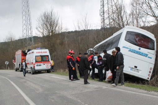 Kaza, saat 13.30 sıralarında Mudurnu yolunda meydana geldi. Bolu’dan Mudurnu istikametine seyreden Murat Karademir idaresindeki 14 LC 303 plakalı minibüs, Gövem köyüne yaklaştığı sırada karşı yönden gelen kamyonu fark etti. 14 BK 051 plakalı hurda yüklü kamyon yolun sol şeridine geçince, içinde 13 yolcusu bulunan minibüsün şoförü kafa kafaya çarpışmamak için direksiyonu kırdı. Yoldan çıkan minibüs şarampole devrilirken, kazadan yara almadan kurtulan 13 yolcu panik yaşadı. Olay yerine gelen Bolu Belediyesi İtfaiye Müdürlüğü’ne bağlı kaza kırım ekibi otobüsü şarampolden çıkarırken, yolcular bir başka minibüsle yollarına devam etti.