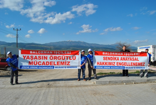 Organize Sanayi Bölgesi (OSB) dün birbiri ardına gerçekleşen eylemlerle sarsıldı. Dün saat 14.30’da patlak veren eylemlerden ilki, Balorman A.Ş.’de yapıldı. Fabrika önünde Selüloz-İş Sendikası üyesi oldukları öğrenilen bir grup işçi, işverenlerce sendikalaşma haklarının önüne geçildiğini iddia ederek, pankartlar eşliğinde eylem yaptı. Selüloz-İş Genel Başkan Vekili ilhan Aktaş’ın da işçilere destek verdiği eylemde işçiler, “Yaşasın örgütlü mücadelemiz”, “Direne direne kazanacağız” yazılı pankartlar açtı.