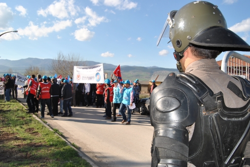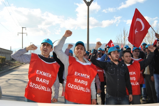 Bir süre sloganlar atarak yürüyüş gerçekleştiren eylemci grup, daha sonra fabrika önünde basın açıklaması düzenledi.