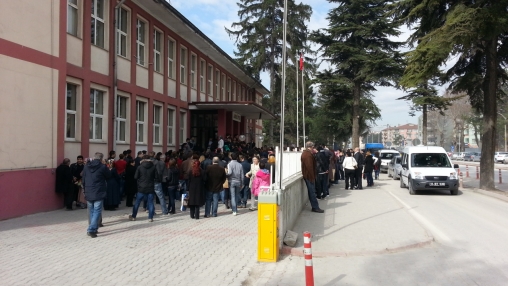 Haber: Nermin KAYA Adalet Bakanlığının Zabıt Katipliği kadrosu için Bolu’da 7 sözleşmeli personel alımı için 30 Mart günü uygulama sınavı yapıldı. Bolu ve ilçeleri için açılan 7 kişilik kadroya 358 kişi başvuru yaptı. Sabahın erken saatlerinde sınavın yapılacağı Bolu Adliyesi önüne gelen adaylar, ellerinde monitör bağlantısı olmayan klavyelerle son çalışmalarını yaptı. Adayların tercihlerine göre sınavda F ya da Q klavye kullanmalarına izin verildi. Çok sayıda başvurunun olduğu sınav için önce F klavye tercihi yapan adaylar sınava alınırken, daha sonra Q klavye tercihli adaylar içeriye alındı. Bolu Cumhuriyet Başsavcısı Mehmet Yurtseven’in de bizzat gözetiminde yapılan sınavda adaylardan, Atatürk’ün Türk diline verdiği önemle ilgili bir metin yazmaları istendi. Saat 09.00’da başlayan sınav 12.00 sıralarında sona ererken sınavdan çıkan bazı adaylar gözyaşlarına hakim olamadı. 12'şerli gruplar halinde içeri alınan adaylardan, üç dakika içerisinde 90 kelime yazmaları şartı arandı. Aralarında çok sayıda üniversite mezunu ve öğrencisi de bulunan adaylardan kimisi işsizlik nedeniyle kimisi ise daha iyi şartlarda çalışabilmek için zabıt katibi olmak istediklerini söyledi. Sınavda noktalama işaretlerine dikkat edilmezken, büyük küçük harflerin doğru yazılması gerektiği vurgulandı. Sınava katılan adaylardan 3 dakikada 90 ve üstü sayıda kelime yazabilen 28 aday 6 Nisan günü sözlü sınava tabi tutulacak. Sınavı kazananlar 1500 ile 1700 lira arasında maaş alacak.