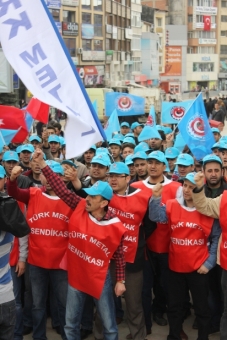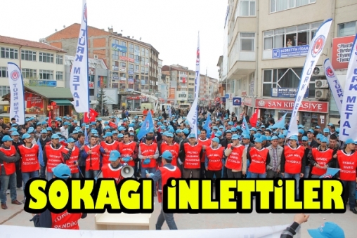 Türk Metal İş Sendikasına bağlı işçiler caddeyi sloganlarıyla inlettiler. Geçen hafta Tansel Elektrik ve Balorman’da çalışan Türk Metal İş Sendikasına bağlı işçiler Organize Sanayi Bölgesinde eylem gerçekleştirirken, bu kez İzzet Baysal Caddesi’nde hak mücadelesi verdiler.