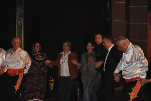 İl Halk Sağlığı Müdürlüğü Yaşlı Sağlığı Merkezi dün Necip Fazıl Kültür Merkezi’nde bir gösteri düzenledi. Gösteride 65 yaş üstü ihtiyar delikanlılar folklor gösterisi ile enerji ve yeteneklerini sergilerken, program sonunda da Damat Halayı çektiler. Bolu Belediye Başkan Yardımcısı Emine Davarcıoğlu da damat halayına katıldı. Gazetemiz muhabiri Nermin Kaya ile birlikte damat Halayı çeken Davarcıoğlu, kısa zamanda figürlere de uyum sağladı.