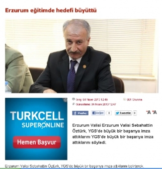 Dün www.haber7.com adlı internet sitesinin haberlerini okumak isteyenler büyük bir hata ile karşılaştılar. Anadolu Ajansı tarafından yayınlanan Erzurum Valisi Sebahattin Öztürk’ün YGS sınavı ile ilgili değerlendirmelerini yayınlayan haber sitesi, haberde kullandığı fotoğraf ile şaşırttı. Erzurum Valisi’ni tanıyamayan haberciler, Erzurum Valisi ile aynı adı taşıyan ve geçtiğimiz yıl elim bir olay sonucu hayatını kaybeden CHP Bolu İl Genel Meclisi Üyesi Sabahattin Öztürk’ün fotoğrafını kullandılar.
