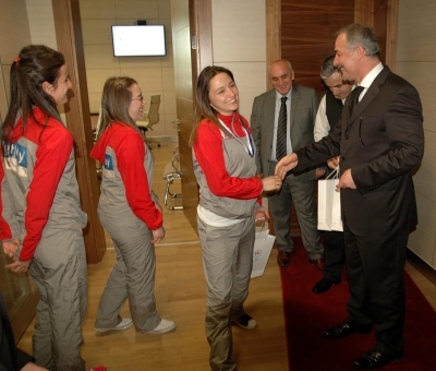 Ziyarette, Spor Genel Müdür Yardımcısı Tamer Taşpınar, Hokey Federasyonu Başkanı Sadık Karakan, Federasyon Başkan Vekili Bayram Yüksel, Bolu Abant İzzet Baysal Üniversitesi Spor Kulübü Başkanı Yard. Doç. Dr. Yılmaz Uçan, Bolu Dağı A.Ş. Genel Müdürü Hasan Umar, Antrenör Yasin Yükseler ve sporcular yer aldı. Hokey Federasyonu Başkanı Sadık Karakan, Bolu Abant İzzet Baysal Üniversitesi hokey takımının elde ettiği başarının önemine değinerek, “Sporcularımız ülkemize çok önemli bir başarıyı getirdi. 100 yıllık geçmişi olan Avrupa ülkelerinin dev kulüplerini dize getirmemiz, namağlup her takıma en az 6 puan fark atıp, hem en iyi oyuncu hem de gol krallığı ödüllerini alıp kupadan dönmek büyük bir başarı” diye konuştu. Son yıllarda hokeyde elde edilen başarıları yakından takip ettiğini dile getiren Spor Genel Müdürü Mehmet Baykan, “Takım olarak elde etmiş olduğunuz bu başarı bizleri çok mutlu etti. Hokeyde Milli Takımlar seviyesinde elde etmiş olduğumuz başarıdan sonra, kulüp takımlarında yakalanan bu başarı çok önemli. İlerleyen yıllarda bu spor dalında daha büyük başarılar elde edeceğimize inanıyorum. Bu başarınızdan dolayı sizleri tebrik ediyor, ilerleyen yıllarda bu başarılarınızın devamını diliyorum” dedi. Ziyaretin ardından Spor Genel Müdürü Mehmet Baykan, sporcularla birlikte fotoğraf çektirirken, Spor Genel Müdür Yardımcısı Tamer Taşpınar da başarılı sporculara çeşitli hediyeler takdim etti.