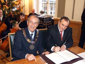 Verilen müzik arasının ardından ise imza törenine geçildi. Napp ve Yılmaz davetlilerin coşkulu alkışları arasında karşılıklı olarak Dost İl Antlaşmasını imzaladılar.