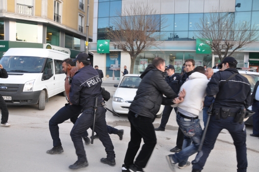 Belediye Meydanı’nı savaş alanına çeviren olaya karışan işçileri ekip araçlarına bindiren polisin, 21 işçiyi gözaltına aldığı bildirildi.