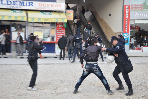 Polisin iyi niyetli önleyici tedbirlerine rağmen kavgada ısrar eden taraflara terörle mücadele ve çevik kuvvet ekipleri müdahale gerçekleştirdi. Polis müdahalesine de karşı koymaya çalışan işçi grubu direniş gösterisinde bulundu. Polisin güçlükle kontrol altına almaya çalıştığı işçiler, ekip araçlarına bindirilemedi. Polisin müdahalesine rağmen birbirlerine küfür ve hakaretler yağdırmaya devam eden saldırgan işçi grubuna polis biber gazıyla müdahale etmek zorunda kaldı.