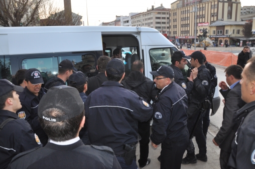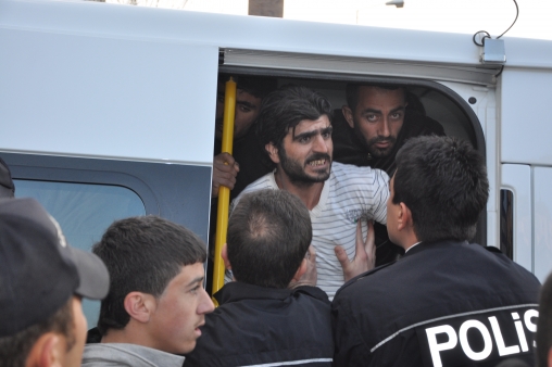 Belediye Meydanı’nı savaş alanına çeviren olaya karışan işçileri ekip araçlarına bindiren polisin, 21 işçiyi gözaltına aldığı bildirildi.