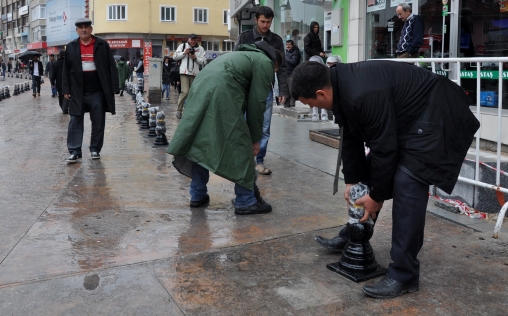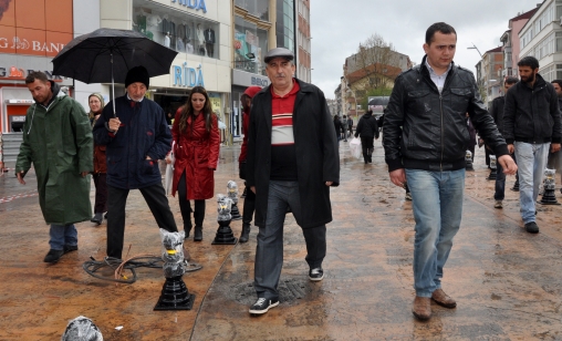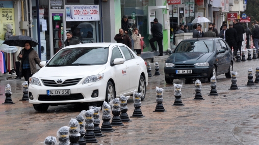 Kentin altını üstüne getiren ve yepyeni projelerle şehir merkezinin görüntüsünü değiştiren Bolu Belediye Başkanı Alaaddin Yılmaz, aylardır süren çalışmalar sonucu ortaya çıkan görüntüyü incelemek üzere İzzet Baysal Caddesi’nde yürüyüş yaptı. Hayırsever işadamı merhum İzzet Baysal’ın adını taşıyan caddeyi Fransa’nın ünlü caddesi Şanzelize’ye benzetmek için düğmeye basan Yılmaz, projeyi hayata geçirmenin sevincini yaşıyor. Aylardır süren çalışmaların son halini incelemek üzere caddede yürüyüş yapan Yılmaz, trafik düzenlemesine el attı. Demir dubalarla Cumhuriyet Caddesi’nden PTT Caddesi’ne geçişi sağlayacak olan alanda işçilerle sohbet eden Başkan Yılmaz, zemine yapılan cilalama ve beton atma çalışmalarının da ne düzeyde olduğunu kontrol etti.