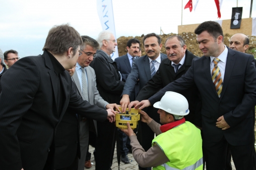 Toplantının ardından, Sağlık Yüksekokulu arkasında bulunan alanda yapılacak, pasif ev inşaatının temel atma töreni gerçekleştirildi. Törende beton butonuna Vali Yardımcısı Ayhan Kartlı, Belediye Başkanı Alaaddin Yılmaz, AİBÜ Rektörü Prof. Dr. Hayri Coşkun ve evin proje sahibi mimar İngoTintemann birlikte basarak hayırlı olsun dileklerinde bulundular.
