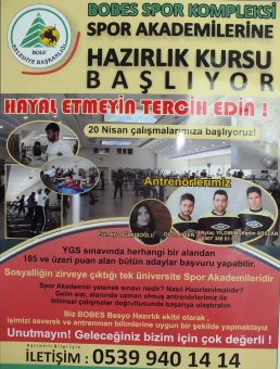 Bugün BOBES’te başlayacak kurslarda Antrenörler Esin Aydoğmuşlu, Okan Ayten, Aytaç Yıldırım ve Kerim Arslan görev yapacak. Kursa katılacakların YGS sınavında herhangi bir alanda 185 puan ve üzeri puan almaları şartı geçerli kılınıyor. Merkezde BESYO kursunun yanında Spor Liseleri, Polis Kolejleri ve Askeri Okullar için de kurslar gerçekleştiriliyor. İletişim için BOBES’in 0 539 940 14 14 nolu telefonunu aramak yeterli oluyor. Konuyla ilgili bir değerlendirme yapan antrenörler şu açıklamayı yaptılar: “Sosyalliğin zirveye çıktığı tek üniversite spor akademileridir. Spor akademi yetenek sınavı nedir? Nasıl hazırlanmalıdır. Gelin sizi alanında uzman olmuş antrenörler ile bilimsel çalışmalar doğrultusunda başarıya ulaştıralım. Biz BOBES BESYO hazırlık ekibi olarak işimizi severek ve antrenman bilimlerine uygun bir şekilde yapmaktayız. Geleceğiniz bizim için çok değerli.”