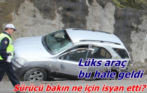 İstanbul’dan Trabzon’a giden 34 HTE 13 plakalı lüks araç, Bolu’nun Düzce sınırında kaza yaptı. Sürücünün direksiyon hâkimiyetini kaybetmesiyle virajı alamayan araç, heyelan için oluşturulan duvara çarparak durabildi.