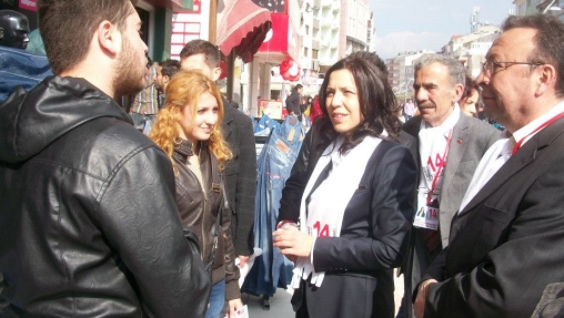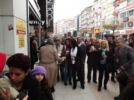 CHP Bolu Belediye Başkan Aday Adayı Mehtap Özcan Mısırlıoğlu; İl Başkanı Fügen Kara, Kadın Kolları İl Başkanı Zuhal Işın, Kadın Kolları İlçe Başkanı Serpil Ber, parti yöneticileri, partili üyeler ve ailesinin de yer aldığı kalabalık bir grup ile İzzet Baysal Caddesi esnafını ziyaret etti.
